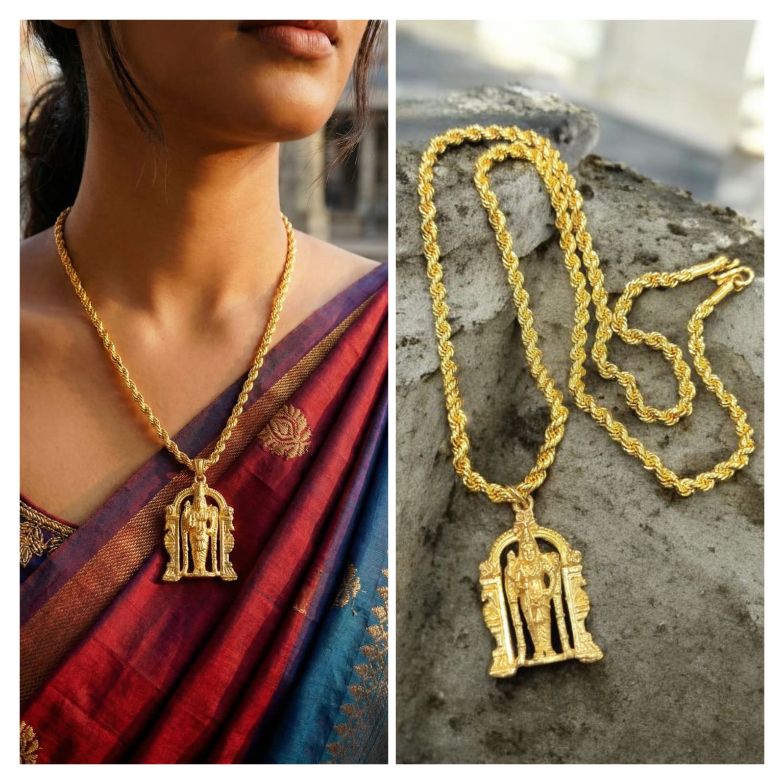 Upgrade your style with this elegant Panchaloha chain with pendant, handcrafted using the traditional five-metal alloy. The chain is durable, lightweight, and perfect for everyday wear. Comes with a beautifully designed pendant that adds a classic touch to any outfit.