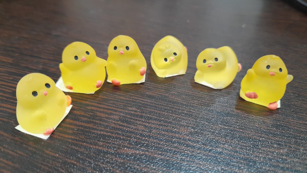 A 1.5 cm glow-in-the-dark chick, with tiny feet balanced neatly and head slightly tilted. Glows softly in dim light, adding a cute charm to any miniature scene